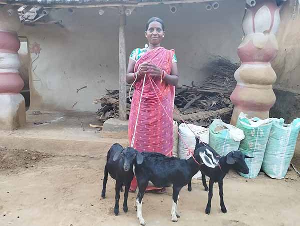 | Urmila Tudu of Isanda village, Purulia, has received support for three goats to establish a scientific livestock management system, which will help enhance her family's overall income.