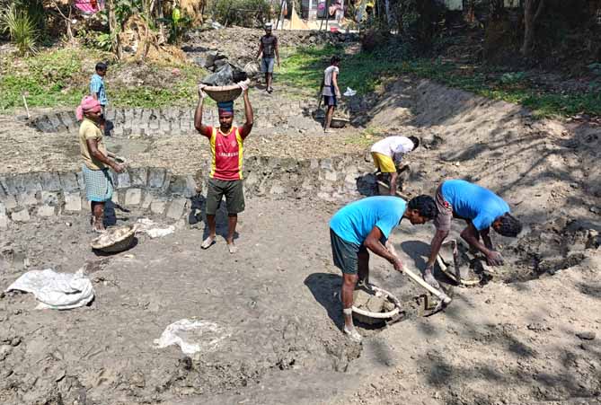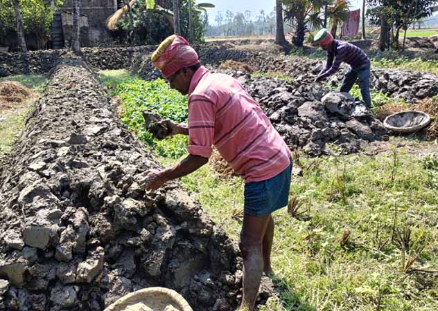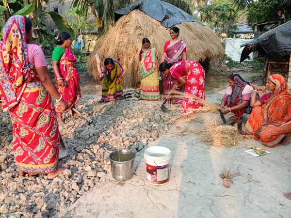 New biogas model at Gouri Mondal's house of Indraprastha village | Womens are engaged in making fencing for social forestry |