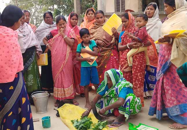 Shibpur village Sabujsathi group member Madhabi Bera's IFS plot. | Chaitali Majhi's NG garden visting Shibsakti group members of Laxmipur village |