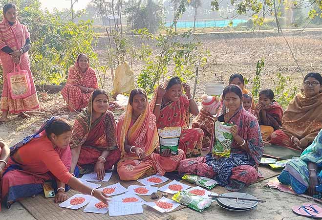 Robi season vegetable seeds distribution among Shyama Mohila Samity at Daspur village | Robi season vegetable seeds distribution among womens group at Buraburir Tat village |