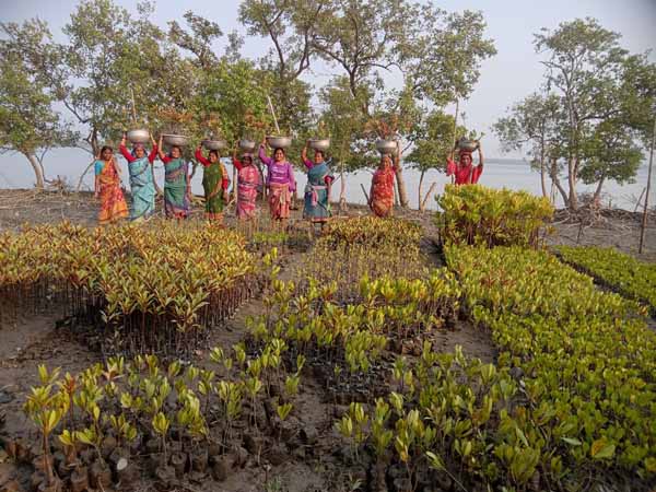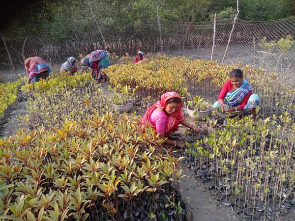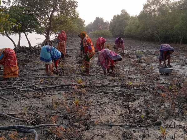 Mangrove narsary pot filling and seedlings by Debichak Beauti Mohila Group | Social forestry sapling plantation work at Indrapur village |